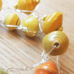 再生紙から出来たCaring Handsのビーズと銅ワイヤーの糸を使用したMaijaオリジナルのカギ編みネックレスシリーズ「Koruttomuus(コルットムース)」(英語で“ジュエリーをつけないシンプルビューティー”の意)。