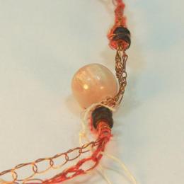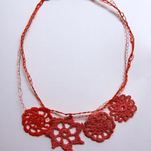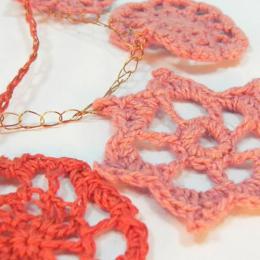 赤&ピンク レースの女性らしく繊細で可憐なネックレス。