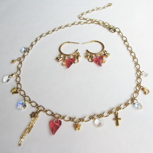 ハート、☆、蝶、クロス、クラウンのチャーム達が、表情の違うスワロフスキービーズ達と、楽しくコラボレーション。 歌声が聞こえてきそうな、大人可愛いネックレス。(ピアス「ハート」とセットで楽しめます)