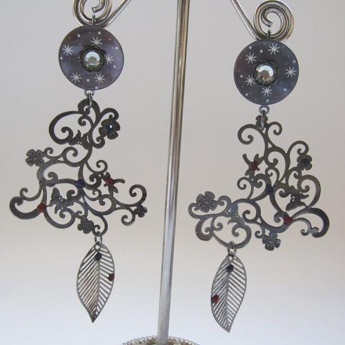 美しい星空を思わせるシェルパーツと少しダークなシルバーの透かしパーツがスタイリッシュでユニーク。