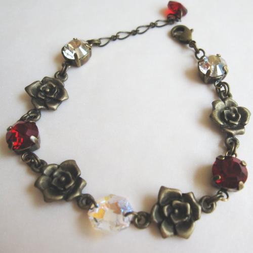 大人っぽいアンティークゴールドのバラのモチーフとシックな赤い石。
