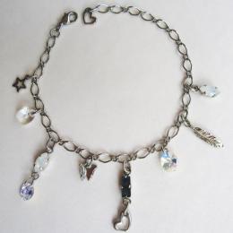 青空を愉しく飛んでいる蝶、風に運ばれて来た羽根、夜空を輝かせる星に、メタリックブルーとオープンハートのチャームをプラス。