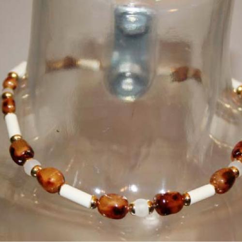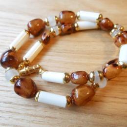 白色の爽やかさと琥珀色のシックな色合いのコンビネーションは、季節を問わず、洋服を選ばず、様々なシーンで使えます。フォーマルなドレスにも、カジュアルなTシャツにも。本物のジュエリーのような高級感あふれるコスチュームアクセサリーです。軽さとお値段のお手頃さが嬉しい。