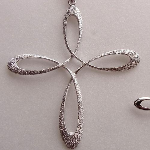 シルバーにロジウムメッキ加工した「エターナル」シリーズのネックレスです。表面にダイヤモンドを打ち付けているため、独特なキラキラ感が生まれています。