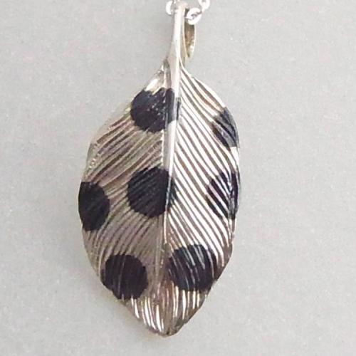 "象嵌(ぞうがん)技法でドット柄やハート柄など、小さい羽で遊んでみました。 小さいワクワクが詰まったネックレスです。"