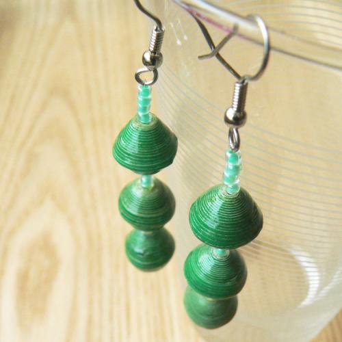 ※リサイクルペーパービーズに使用されているニス、ピアスに使用されているイヤリングフックは、フィンランドの関税研究室でテストされており、無害であると安全性が保障されています。