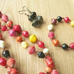※リサイクルペーパービーズに使用されているニス、ピアスに使用されているイヤリングフックは、フィンランドの関税研究室でテストされており、無害であると安全性が保障されています。
