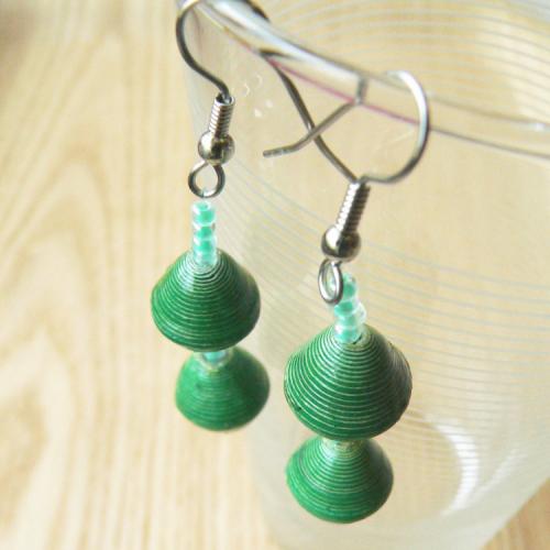 ※リサイクルペーパービーズに使用されているニス、ピアスに使用されているイヤリングフックは、フィンランドの関税研究室でテストされており、無害であると安全性が保障されています。