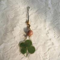 四つ葉のクローバーとウッドビーズのストラップ