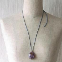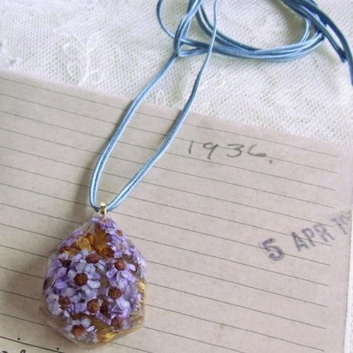 深みのあるブルーの可愛い小花を閉じ込め、ネックレスに仕上げました。