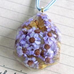 ドライフラワーを閉じ込めたネックレス(ブルー)