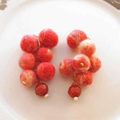 ハンドメイドで一点一点丁寧に作られた、ウールフェルトのピアス。 たわわに実ったフルーツをイメージしたデザインと、柔らかなグラデーションカラーがファッションに彩りを添えます。 ボリューム感がありながら、非常に軽い着け心地も魅力のシリーズです。