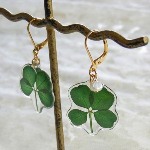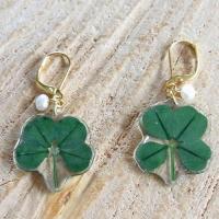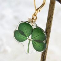 本物の四つ葉のクローバーを樹脂に閉じ込めた可愛いピアス。