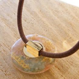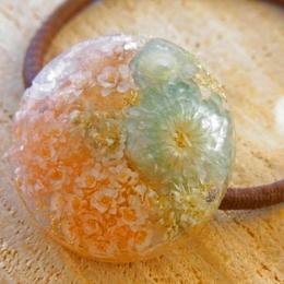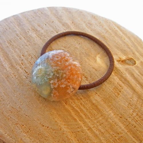 樹脂の中に柔らかい色合いのドライフラワーを閉じ込め、ヘアアクセサリーに仕上げました。 モチーフ表面はカットを施されたようになっており、動くたびにキラキラと光を反射します。 小花がたくさん集まったような、ドライフラワーの繊細な表情に、ついつい見入ってしまいそう…。 モチーフ部分の裏面には金色のレースが貼られており、表から透けて見え、アクセントになっています。 さっと髪をまとめるだけで、可愛いヘアアレンジが完成の便利なアイテム。 手首に通して、ブレスレットのような使い方もオススメです。