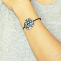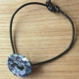 手軽に気軽に楽しんでいただきたいとの想いで、太さ2mmの皮ひもを通し、シンプルに楽しめるブレスレットにしました。