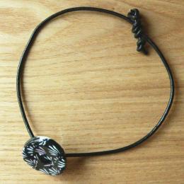 手軽に気軽に楽しんでいただきたいとの想いで、太さ2mmの皮ひもを通し、シンプルに楽しめるブレスレットにしました。