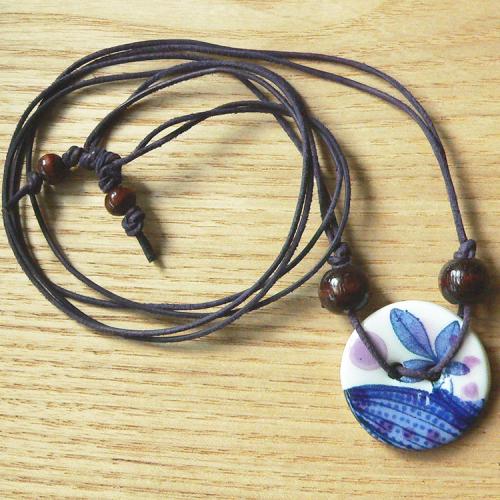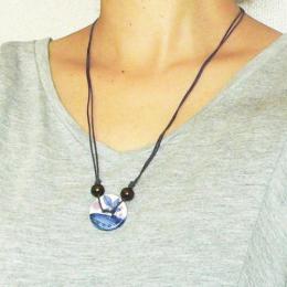 太さ1mm×2本の柔らかい皮ひもを通し、ネックレスにしました。長さもお好みで変えられる仕様になっていますので、お洋服に合わせて楽しむことができます。