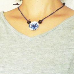 太さ1mm×2本の柔らかい皮ひもを通し、ネックレスにしました。長さもお好みで変えられる仕様になっていますので、お洋服に合わせて楽しむことができます。
