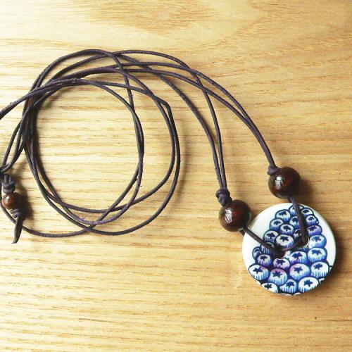 フィンランドの人気女性セラミック・アーティスト、ヘイニ・リータフフタさんから届いたのは、小ぶりな陶製のボタン風モチーフ。成形からすべてヘイニさんのハンドメイド。ひとつひとつ、自然や植物を意識した美しい絵付けが施されています。