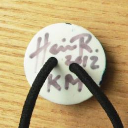 フィンランドの人気女性セラミック・アーティスト、ヘイニ・リータフフタさんから届いたのは、小ぶりな陶製のボタン風モチーフ。成形からすべてヘイニさんのハンドメイド。ひとつひとつ、可愛らしい絵付けが施されています。