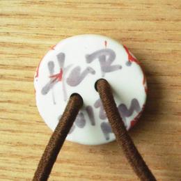 フィンランドの人気女性セラミック・アーティスト、ヘイニ・リータフフタさんから届いたのは、小ぶりな陶製のボタン風モチーフ。成形からすべてヘイニさんのハンドメイド。ひとつひとつ、可愛らしい絵付けが施されています。