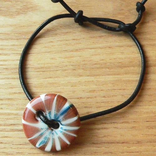 手軽に気軽に楽しんでいただきたいとの想いで、太さ2mmの皮ひもを通し、シンプルに楽しめるブレスレットにしました。